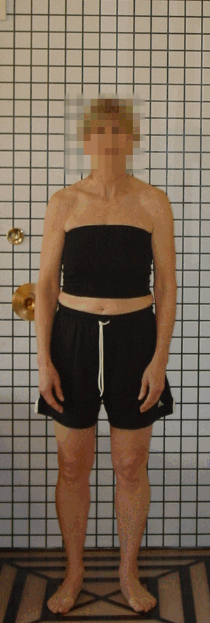 During this session, my client demonstrated progress toward integration both above and below the pelvic region. There is pronation in both her left and right foot and after the session she moves toward a more parallel orientation with more support as her legs are better positioned under her pelvis. Her weight-bearing shifts from left to right, while relaxation of the anterior shoulder girdles facilitate greater lateral movement of the arms away from a forward position. My client's head became more centered over her shoulders, contributing positively to the overall integration process. Through Rolfing we get people to move with more ease with better alignment and feel better in their body through the process.